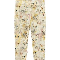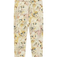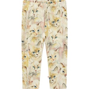 Blassgelbe Leggings mit einem Allover-Print aus Öko-Baumwolljersey für die Kleinen. Sie haben einen elastischen Bund und bestehen aus weichem Material, das für eine gute Passform sorgt. Der Druck zeigt entzückende, mit Aquarell gemalte Katzen in Grau-, Gelb- und Helltönen.