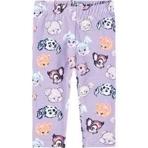 Hellviolette Leggings für die Kleinen aus Öko-Baumwolle. Sie haben einen elastischen Bund und bestehen aus weichem Material für eine gute Passform. Diese Leggings haben einen Aufdruck von gezeichneten Tieren.