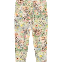 Leggings aus Öko-Baumwolle für die Kleinen. Ein elastischer Bund und weiches Material sorgen für eine gute Passform. Diese Leggings zeigen ein Muster von Babytieren in einem Blumenbeet.