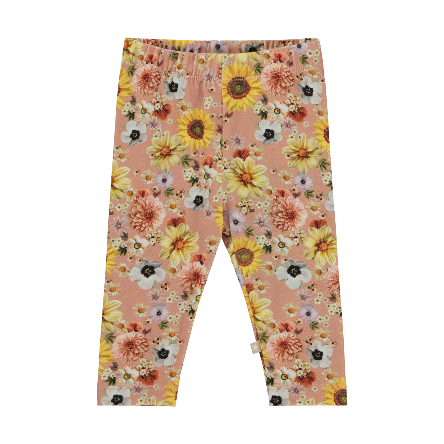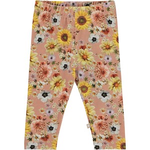 Rosafarbene Baby-Leggings mit Blumendruck. Die Leggings bestehen aus 100% Baumwolle und haben einen elastischen Bund, der für bestmöglichen Sitz sorgt.