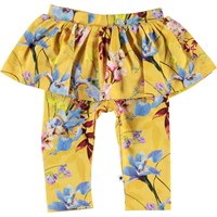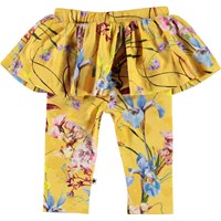 Susan sind ein Paar Baby-Leggings in Gelb mit Blumen-Druck und Rock in der Taille. Die elastische Taille und das weiche Material sorgen für eine gute Passform.