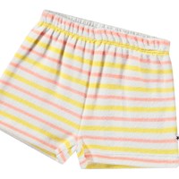 Kurze Hosen aus weicher Baumwoll-Frottee für die Kleinen. Gestreift in Weiß, Gelb und Rosa. Kombinieren Sie sie mit dem passenden Oberteil Dora für ein komplettes Outfit.
