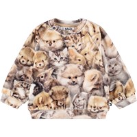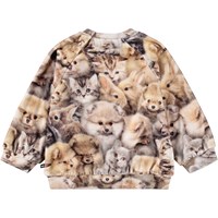 Weicher Pullover für die Kleinen aus Velours mit Tierdruck. Der Pullover hat Raglanärmel, gerippte Abschlüsse und einen Rundhalsausschnitt mit Knopfverschluss hinten auf der Schulter, um das An- und Ausziehen zu erleichtern. Dieser Stil hat eine aufgeraute Innenseite, was bedeutet, dass er angenehm warm zu tragen ist. Kombinieren Sie ihn mit der passenden Hose für ein komplettes Outfit.