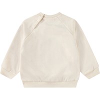 Sweatshirt aus weicher Öko-Baumwolle für die Kleinen. Das Sweatshirt hat Raglanärmel, gerippte Abschlüsse und einen runden Ausschnitt mit Knopfverschluss hinten auf der Schulter, was das An- und Ausziehen erleichtert. Dieses Sweatshirt hat einen grünen Aufdruck eines lächelnden, gesprayten Herzens. Kombinieren Sie es mit der passenden Hose für ein komplettes Outfit.
