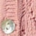 Rosa Strickjacke für die Kleinen. Die Strickjacke hat ein zartes Muster und gerippte Kanten an den Ärmeln, am Ausschnitt und am unteren Saum der Strickjacke. Sie wird vorne mit kleinen Perlmuttknöpfen geschlossen.