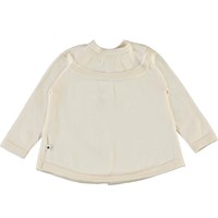 Gisela ist eine permuttfarbige Baumwoll-Strickjacke für die Kleinsten mit einer feinen Glockenform.