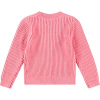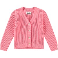 Rosa gestreifter Cardigan für die Kleinen. Der Cardigan ist aus einem schönen Rippstrick gefertigt und hat gerippte Abschlüsse an den Ärmeln, am Bund und am Ausschnitt sowie einen Knopfverschluss. Er hat eine tolle Passform und einen exklusiven Look mit wunderschönen Perlmuttknöpfen.