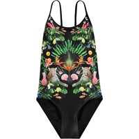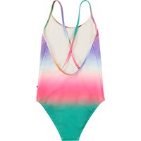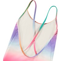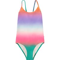 Bunt gestreifter Badeanzug für aktive Kinder aus recyceltem Polyester mit UV-Schutz 50+. Der Badeanzug hat eine normale Passform, ist komplett gefüttert und verfügt über dünne Träger, die am tiefen Rücken überkreuzen. Das Produkt ist CE-gekennzeichnet und gemäß der Norm EN-13758-1 getestet.
