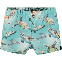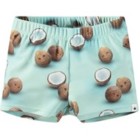 Badehosen für die Kleinen aus recyceltem Polyester mit UV-Schutz 50+. Die Badehosen haben eine reguläre Passform, innere Shorts mit Platz für eine Windel, einen elastischen Bund und einen internen Kordelzug, was sie angenehm zu tragen macht. Die Badehosen sind hellblau mit einem Allover-Druck von frischen Kokosnüssen. Das Produkt ist CE-gekennzeichnet und gemäß der Norm EN-13758-1 getestet.