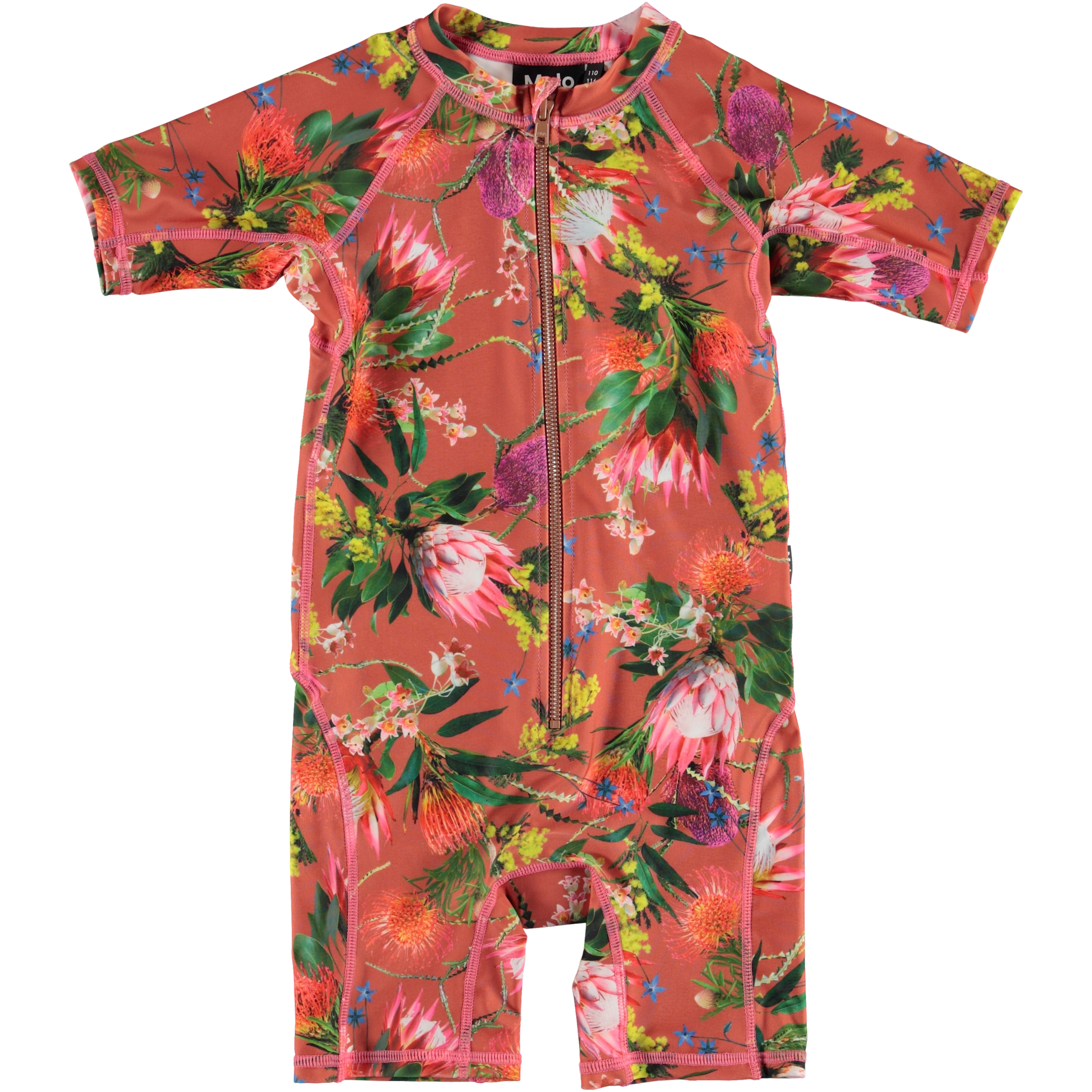 Neka ist ein praktischer UV-Badeanzug mit dem Aufdruck 'Australian Flowers'. Der Badeanzug hat vorne einen langen Reißverschluss und besteht aus einem elastischen Material, das das An- und Ausziehen erleichtert und eine gute Bewegung ermöglicht. Der Badeanzug bedeckt das meiste der Oberarme und Oberschenkel und schützt so Bereiche, in denen Kinder leicht einem Sonnenbrand ausgesetzt sind. Molos Badebekleidung hat einen UV-Schutz von 50+. Das Produkt ist CE-gekennzeichnet und gemäß der Norm EN-13758-1 getestet.