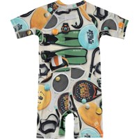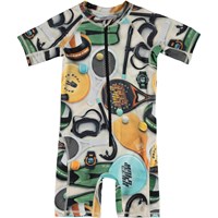 Neka ist ein praktischer UV Badeanzug mit farbenfrohen Prints von lustiger Strandausrüstung. Der Badeanzug hat vorne einen langen Reißverschluss und besteht aus einem elastischen Material, das das An- und Ausziehen erleichtert und für gute Bewegungsfreiheit sorgt. Der Badeanzug bedeckt die meisten Oberarme und Oberschenkel und schützt so effektiv in Bereichen, in denen Kinder zu Sonnenbrand neigen. Die Bademode von Molo hat einen UV Schutz von 50+. Das Produkt ist CE-gekennzeichnet und gemäß der Norm EN-13758-1 getestet.