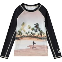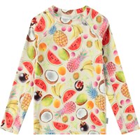 Rashguard für aktive Kinder aus recyceltem Polyester mit UV-Schutz 50+. Der Rashguard hat eine enge Passform, einen Stehkragen und lange Raglanärmel. Er ist angenehm zu tragen dank des dehnbaren Materials. Der Rashguard verfügt über einen bunten Regenbogen-Druck und ein lächelndes Gesicht auf der Vorderseite. Das Produkt ist CE-gekennzeichnet und gemäß der Norm EN-13758-1 getestet.