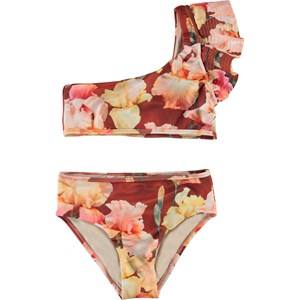 Nola ist ein asymmetrischer Bikini mit Irisblüten-Print in rötlichen Tönen. Der Bikini hat einen einzelnen Träger mit einer schönen gestrickten Rüsche, die einen besonderen skulpturellen Look verleiht. Nola hat eine gute Passform, das Höschen hat eine mittelhohe Taille und der Bikini ist generell gut sitzend und angenehm zu tragen. Die Bademode von Molo hat einen UV Schutz von 50+. Das Produkt ist CE-gekennzeichnet und gemäß der Norm EN-13758-1 getestet.