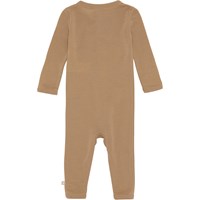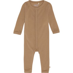 Fahari ist ein rosafarbener Babyanzug. Der Anzug ist aus 100% Merino Wolle und hat lange Beine und Ärmel sowie einen V-Ausschnitt und Druckknöpfe entlang der Vorderseite.