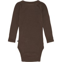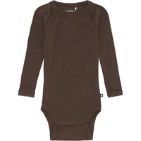 Farai ist ein brauner Babybody aus 100% Merino Wolle. Farai hat einen Druckknopf im Kragen und zwischen den Beinen, der das An- und Ausziehen des Bodys erleichtert.