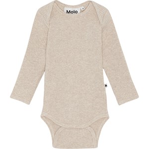 Faros ist ein beiger Unisex-Babybody in Rippqualität. Faros hat einen Druckknopf im Kragen und zwischen den Beinen, der das An- und Ausziehen des Bodys erleichtert.