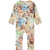 Bunter Overall aus Öko-Baumwolle mit langen Ärmeln und Beinen sowie Druckknöpfen vorne. Der Overall hat einen niedlichen Allover-Print von Teddybären, die sich umarmen, kuscheln und feiern.