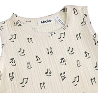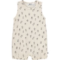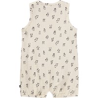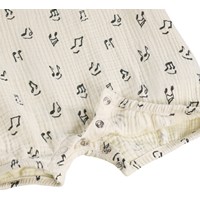 Cremefarbener Strampler für die Kleinen aus weichem, biologischem Baumwoll-Musselin mit Musikdruck. Der Strampler ist ärmellos und beinlos, was ihn perfekt für warme Sommertage macht. Die Druckknöpfe an der Schulter und zwischen den Beinen erleichtern das An- und Ausziehen.