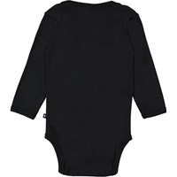 Foss ist ein langärmeliger Babybody in Schwarz. Druckknöpfe am Hals und zwischen den Beinen erleichtern das An- und Ausziehen.