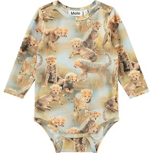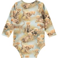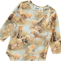 Langarm-Body aus Öko-Baumwolle für die Kleinen. Der Body verfügt über zarte Verzierungen und Knopfverschlüsse an den Schultern und zwischen den Beinen für einfaches Anziehen. Dieser Body hat einen Aufdruck von Gepardenjungen.