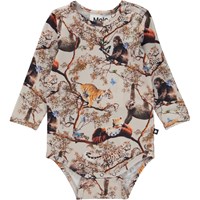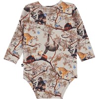 Foss ist ein rosafarbener Babybody mit einem Aufdruck verschiedener Tierjungen, die harmonisch in der Natur zusammenleben. Foss hat Druckknöpfe im Kragen und zwischen den Beinen, die das An- und Ausziehen des Bodys erleichtern.
