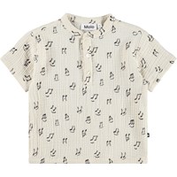 Cremefarbenes, kurzärmeliges Poloshirt für die Kleinen, mit Musikdruck aus weichem, biologischem Baumwollmusselin. Das Shirt hat einen kleinen Kragen und einen Knopfverschluss vorne, was es leicht und bequem für warme Tage macht.