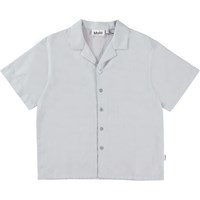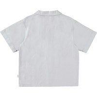 Rui ist ein hellblaues Unisex-Shirt mit kurzen Ärmeln und einer übergroßen Passform. Das Hemd ist aus einer Mischung aus Leinen und Baumwolle gefertigt und hat einen Stehkragen und einen Knopfverschluss auf der Vorderseite. Kombiniere das Shirt mit der passenden Shorts für ein cooles Sommeroutfit.