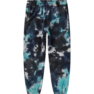 Blaue Batik-Jogginghose aus Öko-Baumwolle mit aufgerauter Innenseite, die sie weich und warm zu tragen macht. Die Hose hat eine normale Passform, einen elastischen Bund mit innenliegendem Kordelzug sowie elastische Knöchel und Seitentaschen.