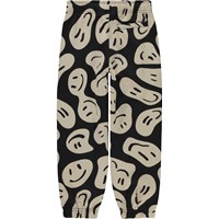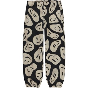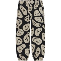 Schwarze Jogginghose im Allover-Print. Auf dem Druck schweben viele fröhliche und beige Gesichter herum und wurden verzerrt, weil es viele Möglichkeiten gibt, Spaß zu haben. Diese Hose besteht aus 100% Baumwolle, hat einen Gummizug und einen Innenbund in der Taille, einen Gummizug an den Knöcheln, Seitentaschen und eine Hintertasche. Die Hose hat eine normale Passform. Kombinieren Sie evt. diese Hose mit dem Sweatshirt Monti im gleichen Aufdruck für das perfekte Set.