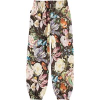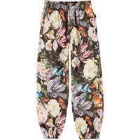 Adan ist eine Unisex-Jogginghose mit Aufdruck großer Blumen. Die Hose hat einen Gummizug am Knöchel und in der Taille sowie Vordertaschen und eine einzelne aufgenähte Gesäßtasche.