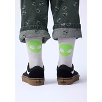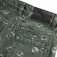 Grüne Jeans aus Baumwolle mit Jacquard-gewebten Aliens. Die Jeans haben 5 Taschen und eine weite Passform, inspiriert von der Skateboard-Szene.