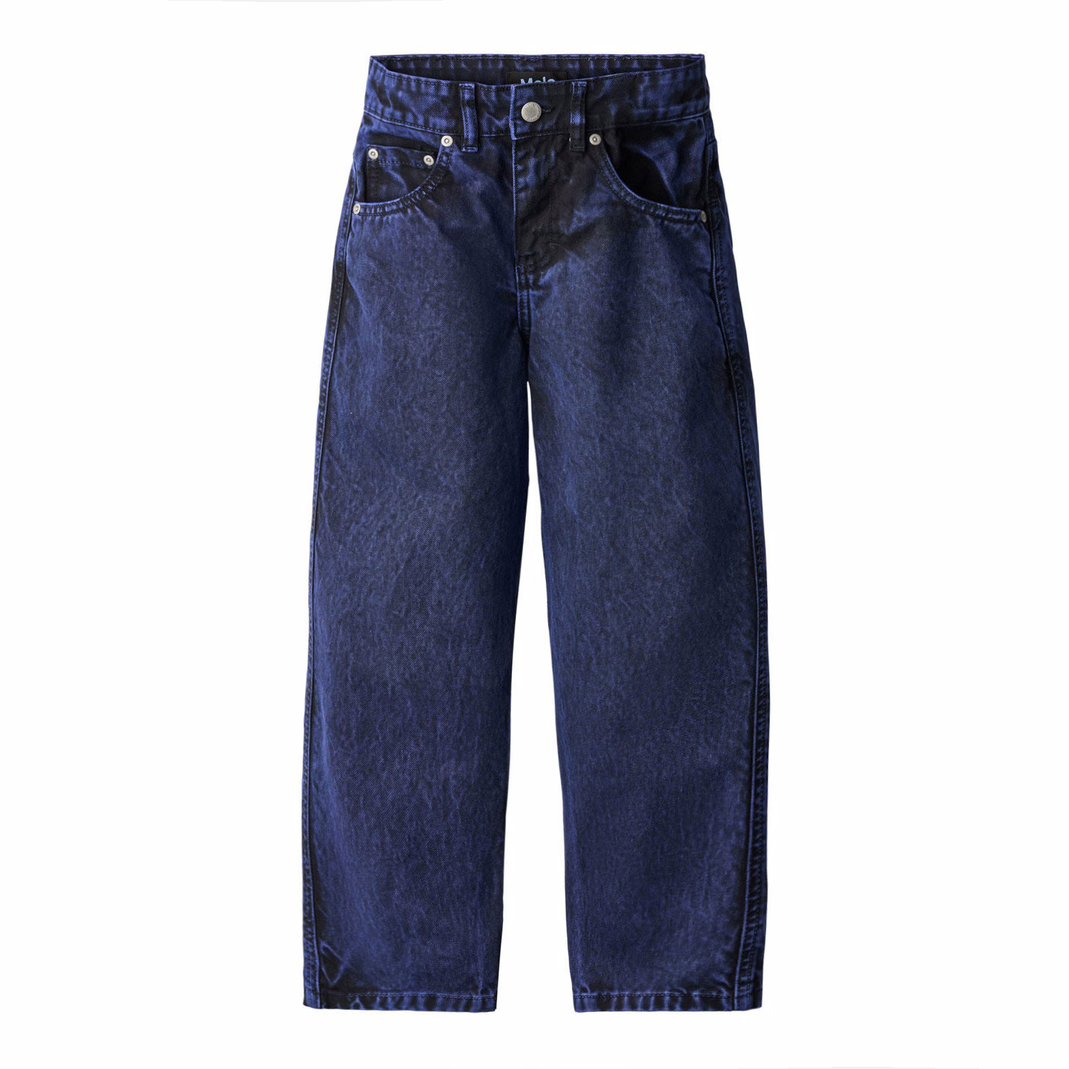 Jeans aus Öko-Baumwolle mit schwarz-blauer Waschung. Die Jeans haben 5 Taschen und eine weite Passform, inspiriert von der Skateboard-Szene.