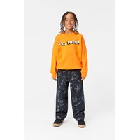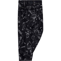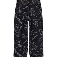 Schwarze Jeans mit weißem Muster. Die Jeans hat 5 Taschen, weite Beine und einen Reißverschluss. Sie sind von der Skaterszene inspiriert und haben eine lockere Passform.