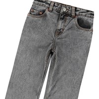 Graue Jeans aus Öko-Baumwolle mit 5 Taschen, geradem Bein und Reißverschluss. Diese Hose ist von der Skateboard-Szene inspiriert und hat eine lockere Passform.Der Bund der Jeans kann mit einem internen Gummizug angepasst werden, um eine perfekte Passform für alle Kinder zu gewährleisten. Größen 92-134 haben einen Druckknopf, der das An- und Ausziehen erleichtert, während Größen 140-176 einen regulären Jeansknopf haben.