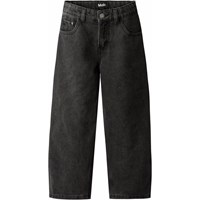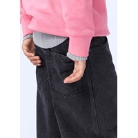 Denim-Jeans aus Öko-Baumwolle mit schwarzem Waschung. Die Jeans haben 5 Taschen und eine weite Passform, inspiriert von der Skateboard-Szene.
