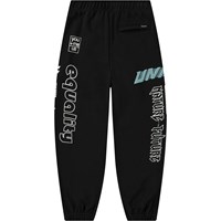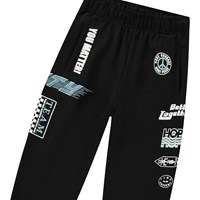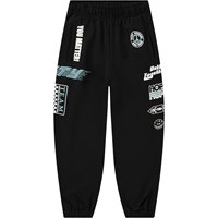 Öko-Baumwoll-Sweatpants. Die Hose verfügt über einen verstellbaren elastischen Bund, Seitentaschen, eine einzelne Gesäßtasche, elastische Knöchelbündchen und eine reguläre Passform. Sie sind schwarz mit Motocross-Referenzen im Druck. Für ein komplettes Outfit kombinieren Sie sie mit einem passenden Sweatshirt.