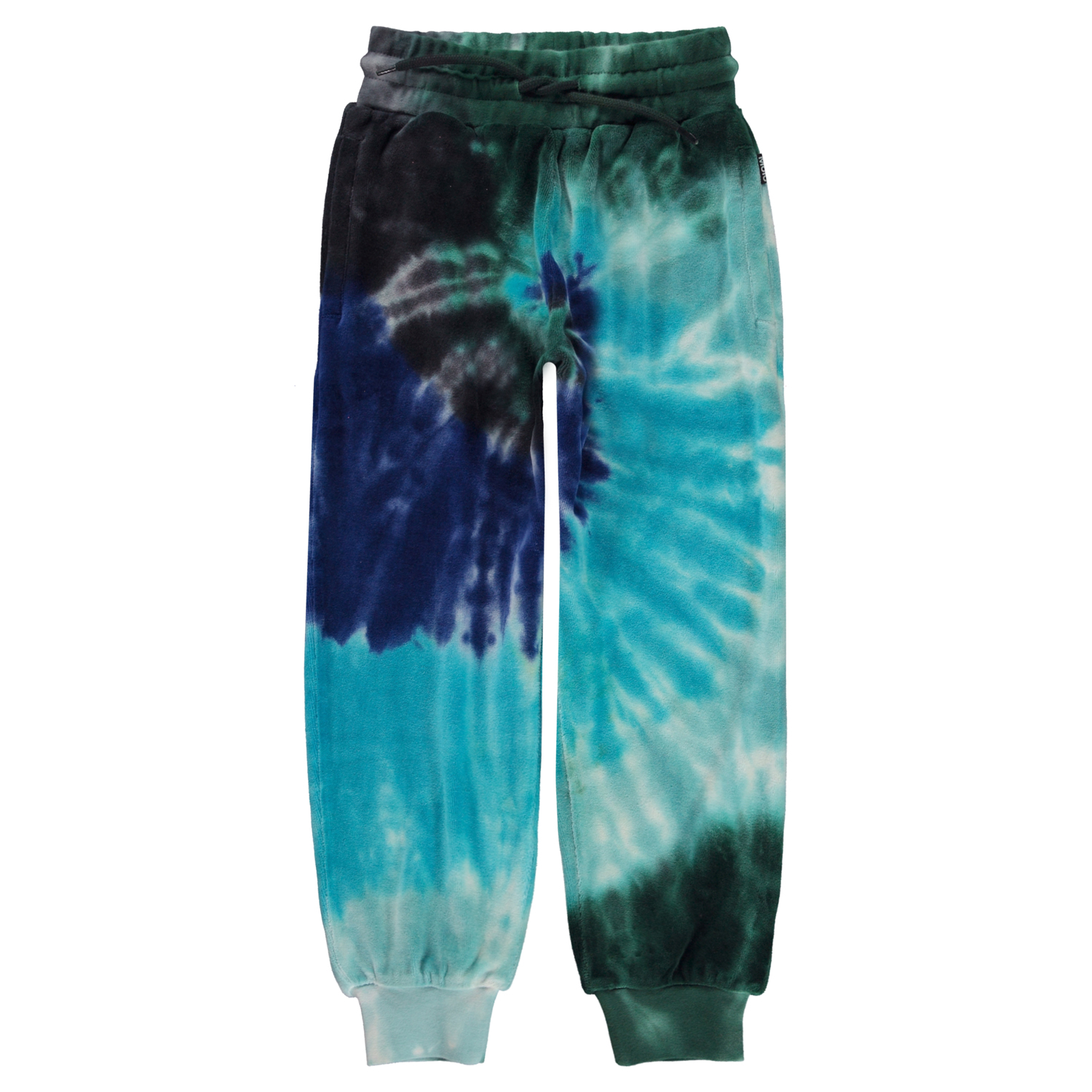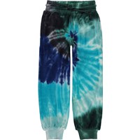 Blaue Jogginghose mit Batikdruck in verschiedenen Blautönen. Diese Hose besteht aus 100% weichem Baumwollvelours, hat einen Gummizug und Bänder in der Taille, Rippbündchen an den Knöcheln, Seitentaschen und eine Hintertasche. Die Hose hat eine normale Passform. Kombinieren Sie evt. die Hose mit dem Hemd Mike im gleichen Aufdruck für das perfekte Set.