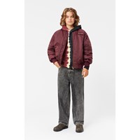 Dunkelgraue, übergroße Jeans mit 5 Taschen und Gürtelschlaufen. Die Jeans haben eine übergroße Passform und einen Peace-Patch an einer der Taschen.