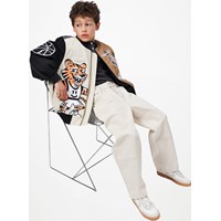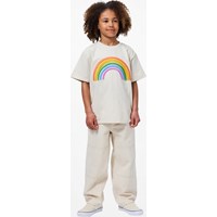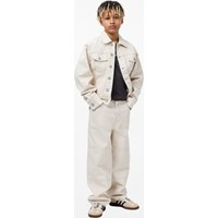Beige Jeans aus Baumwolle mit weitem und entspanntem Schnitt, inspiriert vom Skater-Stil. Die Hose hat 5 Taschen und einen verstellbaren Gummizug in der Taille, sodass sie allen Kindern gut passt. Die Größen 92-134 haben einen Druckknopf, der das An- und Ausziehen erleichtert, während die Größen 140-176 einen klassischen Jeansknopf haben.