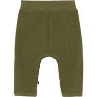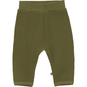 Samantha ist eine grüne Babyhose aus gewaffelter Baumwolle. Die Hose hat einen elastischen Bund, der für ein angenehmes Tragegefühl sorgt.