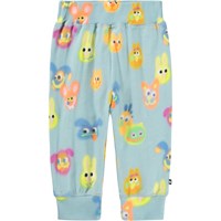 Blaue Hosen für die Kleinen mit einem lustigen Druck. Die Hosen haben einen breiten, elastischen Rippbund an Taille und Knöcheln, um eine gute und bequeme Passform zu gewährleisten. Sie sind weich und flexibel mit viel Bewegungsfreiheit.