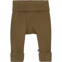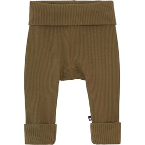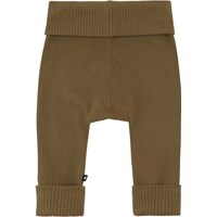 San ist eine grün-braune Öko-Babyhose. Kombinieren Sie mit passendem Oberteil. Die Hose hat einen breiten Gummibund und einen Beinabschluss, wo beides umgeschlagen ist.