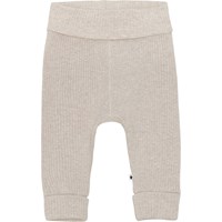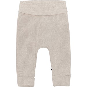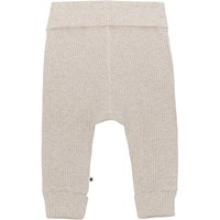 San ist eine weiche, hellgraue Babyhose in Rippqualität. Die Hose hat einen breiten elastischen Bund und einen Beinabschluss, wo beide mit Umschlag sind. Mit passendem Oberteil kombinieren.