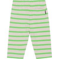 Gestreifte Jogginghose in Grün und Sand für die Kleinen aus Öko-Baumwolle. Die Hose hat eine lockere Passform, einen Gummizug und Bänder in der Taille, die das An- und Ausziehen erleichtern und Bewegungsfreiheit bieten. Auf der Vorderseite der Hose ist ein kleines gelbes Smiley-Gesicht aufgestickt, das zur Krawatte passt. Kombinieren Sie die Hose mit einer passenden Bluse oder einem T-Shirt und erhalten Sie ein weiches Sweat-Set.