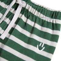 Bretonische grün- und cremefarben gestreifte Hose für die Kleinen aus Öko-Baumwolle. Die Hose hat eine lockere Passform mit einer Gesäßtasche und einem elastischen Bund mit Kordelzug, um sie leicht an- und auszuziehen. Das leichte und luftige Design sorgt für viel Bewegungsfreiheit und auf der Tasche befindet sich ein kleines gesticktes lächelndes Gesicht. Kombinieren Sie die Hose mit dem passenden Sweatshirt für ein komplettes Set.