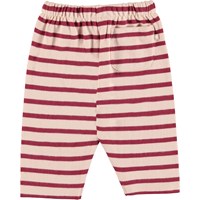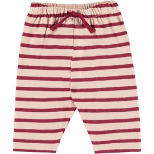 Saxon ist eine bretonisch gestreifte Babyhose in Rosa mit roten Streifen. Die Hose hat weite Beine und wird in der Taille gebunden. Mit passendem Oberteil kombinieren.