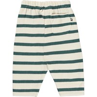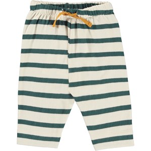 Saxon ist eine bretonisch gestreifte Babyhose in Weiß mit grünen Streifen. Die Hose hat weite Beine und wird in der Taille gebunden. Mit passendem Oberteil kombinieren.