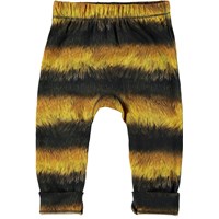 Seb ist eine Babyhose mit schwarzen und gelben Streifen, die wie eine Biene aussehen. Seb hat schmale Beine und eine gerippte Kante. Die Hose hat eine elastische Taille, die für eine bequeme Passform sorgt.