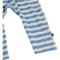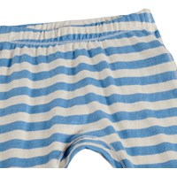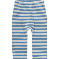 Weiche blau gestreifte Leggings für die Kleinen aus Bio-Baumwolle. Sie haben einen elastischen Bund und eine gute Passform.