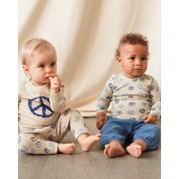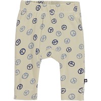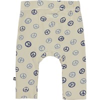 Seb ist eine beigefarbene Babyhose mit Peace-Zeichen-Print. Seb hat schmale Beine und einen gerippten Saum. Die Hose hat einen elastischen Bund, der für ein angenehmes Tragegefühl sorgt.